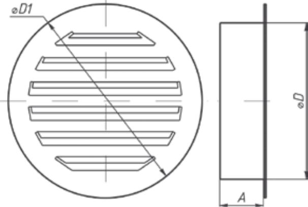 Решетки представляют собой круглую основу с неподвижными жалюзи,которые препятствует проникновению дождя и снега. Внутри решетки установлена защитная сетка, препятствующая попаданию в вентиляционный канал крупных загрязнителей и насекомых.